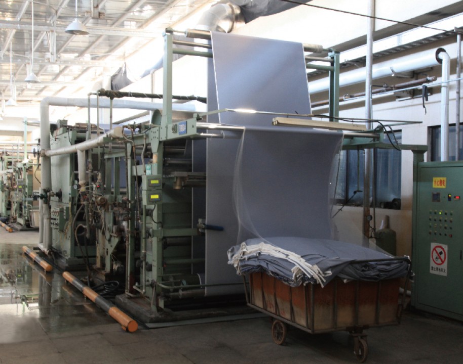 主要印染加工各類全棉、T/R、T/C及棉裘系列各種印花染色產品,有韓國進口定型機6臺、長車軋染線3條、配套前道蒸漂絲光